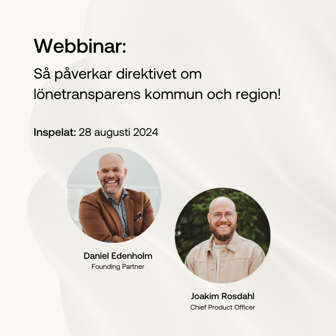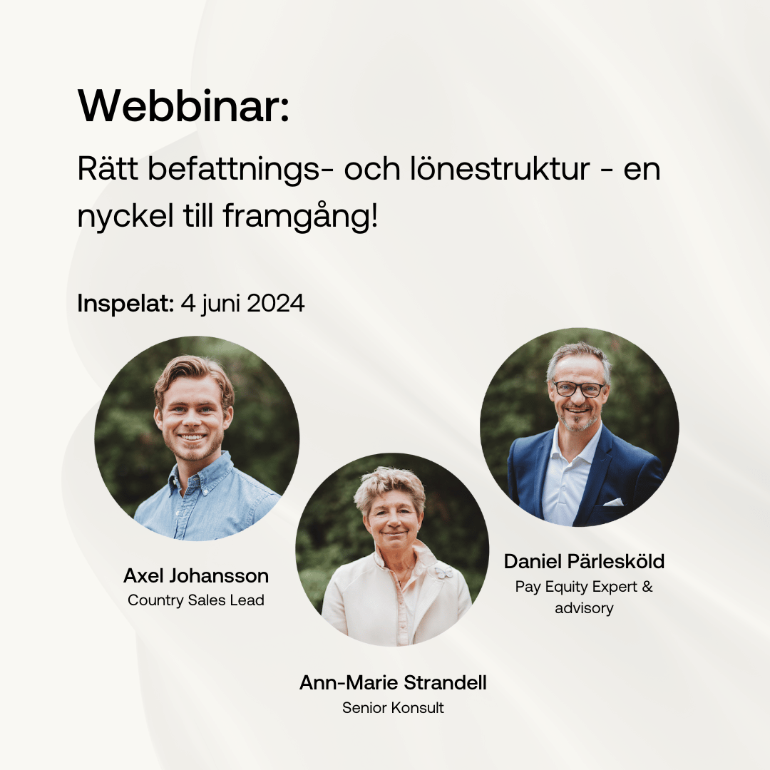 Här hittar du vår samling av webbinar och digitala event, alla utformade för att ge dig värdefull kunskap och inspiration. Ta del av ämnen som lönekartläggning, lönetransparens, strategiska HR-praktiker och effektiv lönesättning. Oavsett om du är ny på området eller vill fördjupa din expertis, erbjuder våra webbinar praktiska insikter och råd för att stärka din organisations utveckling.